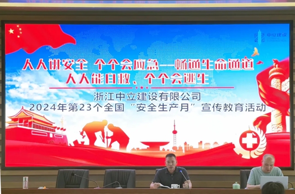 今年6月是第23個全國“安全生產月”,活動主題為“人人講安全,個個會應急--暢通生命通道;人人能自救、個個會逃生”。會上,安全部向參會人員宣貫了中立建設2024年“安全生產月”活動實施方案,要求施工現(xiàn)場通過各種形式的活動,如啟動儀式、懸掛橫幅、宣傳海報、“四小”安全教育等宣傳營造“安全生產月”活動氛圍,提高員工的安全意識。組織開展安全生產教育培訓,觀看“安全生產大家談”、“班前會”、“安全生產月”宣傳片和警示片等活動,深入學習安全生產知識,提升員工的安全防范能力。學習《房屋市政工程生產安全重大事故隱患判定標準(2022)》等,及時了解和掌握安全生產法律法規(guī),確保施工過程中的合規(guī)性。開展應急救援演練,加強關鍵部位的隱患排查,提高應對突發(fā)事故的能力,確保施工安全。