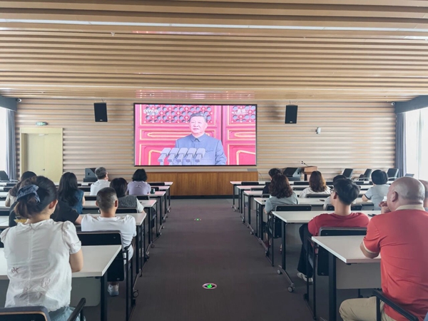 上午9時,全體員工聚精會神地觀看直播畫面,不時發(fā)出陣陣贊嘆。當(dāng)國旗護衛(wèi)隊邁著鏗鏘有力的步伐走向升旗區(qū),當(dāng)雄壯的《義勇軍進行曲》響徹天安門廣場,觀看現(xiàn)場的員工們自發(fā)起身,與現(xiàn)場同步高唱國歌,表達對祖國的深切熱愛和崇高敬意。