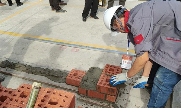 參賽代表需在1.5小時內(nèi)完成長1.5米、高1.2米的帶預留洞口和馬牙槎的砌體,通過緊張、激烈的競賽,最終裁判通過垂直度、灰縫寬度、平整度等現(xiàn)場實測實量和砌體構(gòu)造及觀感質(zhì)量等綜合評分,我公司代表隊獲得了第二名的好成績。